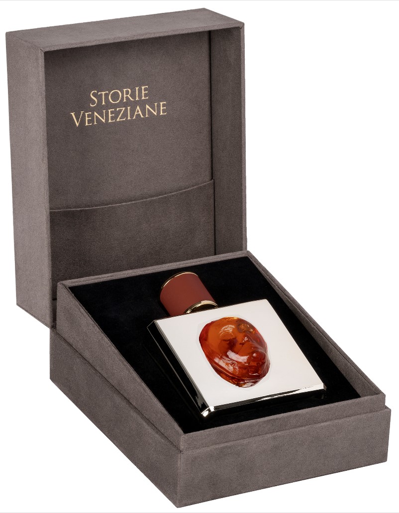 Ces masques sont colorés de pigments situant chaque extrait dans son code coloriel dédié Les ingrédients les plus précieux de la parfumerie contemporaine se côtoient et s’entrechoquent en un faste éventail de créations olfactives. Storie Veneziane, est une revisite très personnelle de la plus flamboyante des cités.