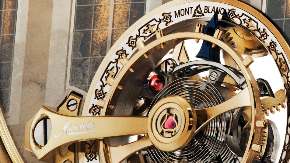 Ces ornements ont été réalisés avec différentes techniques : émaillage traditionnel, micro-peinture et incrustations en marbre et en chêne. D’autres techniques moins traditionnelles offrent elles aussi des effets superbes, comme la modélisation 3D et la gravure laser sur saphir et laiton. La précision horlogère repose sur l’Exo Tourbillon, un mécanisme breveté par Montblanc. Cette complication développée en interne pendant plus de trois ans à la Manufacture Montblanc de Villeret (en Suisse) a été lancée en 2010.