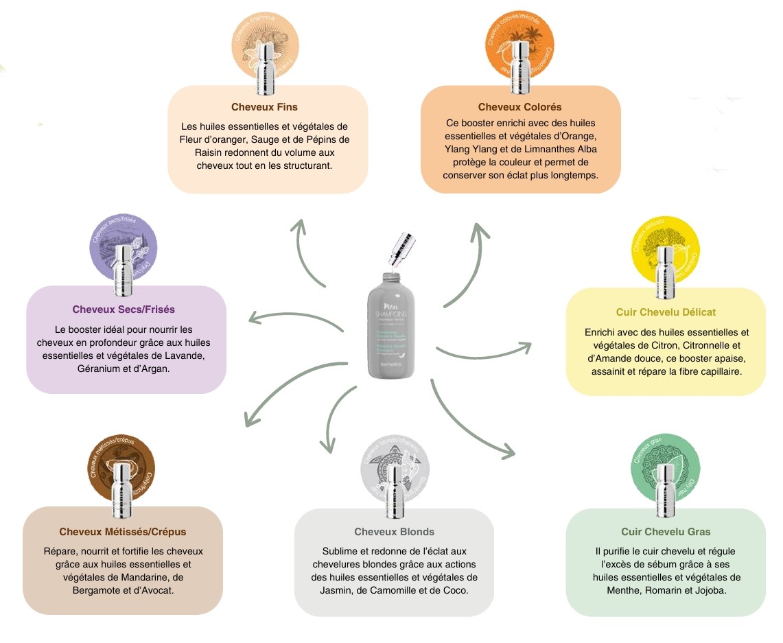 Il s’agit de choisir l’un des 7 boosters d’huiles essentielles et végétales selon le type de cheveux et de verser le Booster intégralement dans le Shampoing ou le Soin après-shampoing. Il suffit d’ajouter un seul booster par bouteille pour obtenir une routine sur-mesure. Dès la première utilisation mes cheveux sont ultra doux et brillants !
