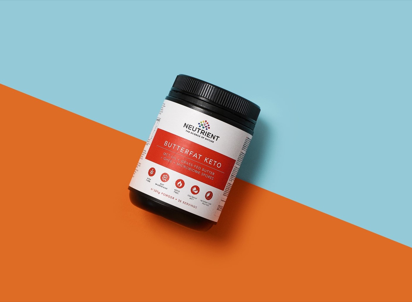 Butterfat Keto de Neutrient™ est une poudre composée d’un mélange naturel de bons lipides, beurre clarifié certifié bio (ghee, issu de la tradition ayurvédique), du beurre provenant de vaches nourries à l’herbe et des probiotiques thermorésistants, du MCT C8 issus de la noix de coco et probiotiques, mais sans sucre, huile de palme, gluten, soja, ni arôme ajouté. Butterfat Keto est conçu pour apporter énergie, satiété et confort digestif, sans provoquer de pic glycémique.