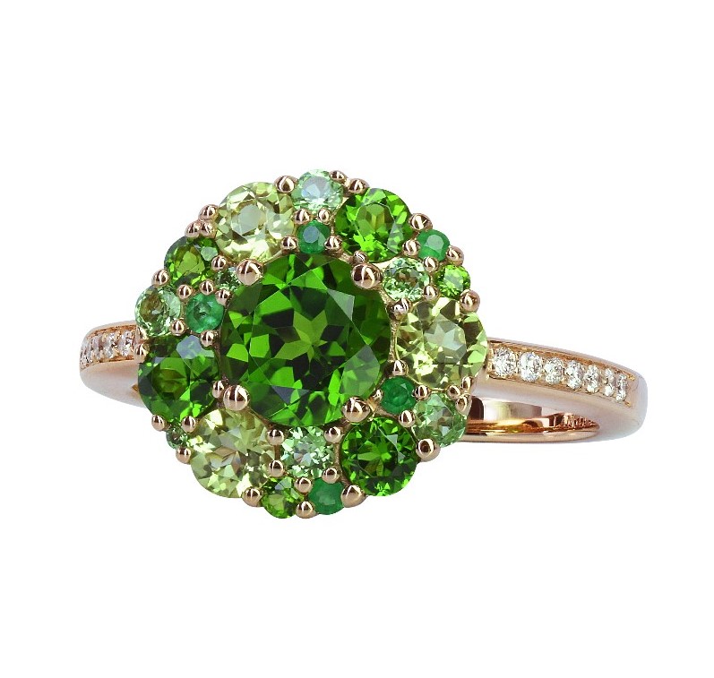 visuel© Isabelle Langlois - Bague Emotion rond- avec Diopside, peridot, tsavorite, emeraude et diamants.