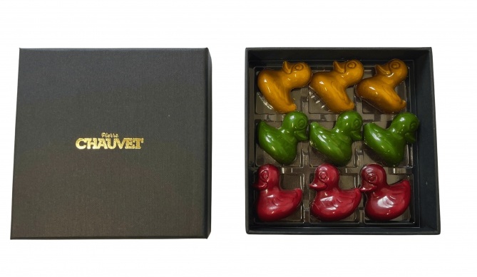 Bien sûr les cocottes, œufs, lapins, poissons traditionnels et même de jolies sucettes en chocolats décorées d'un petit canard sont présents en dans les boutiques et/ ou sur l’E-shop, mais Pierre Chauvet a aussi créé toute une charmante animalerie originale, composée de canards, licornes, hippopotames, moutons, toucans, grenouilles ainsi que de très mignons oursons.