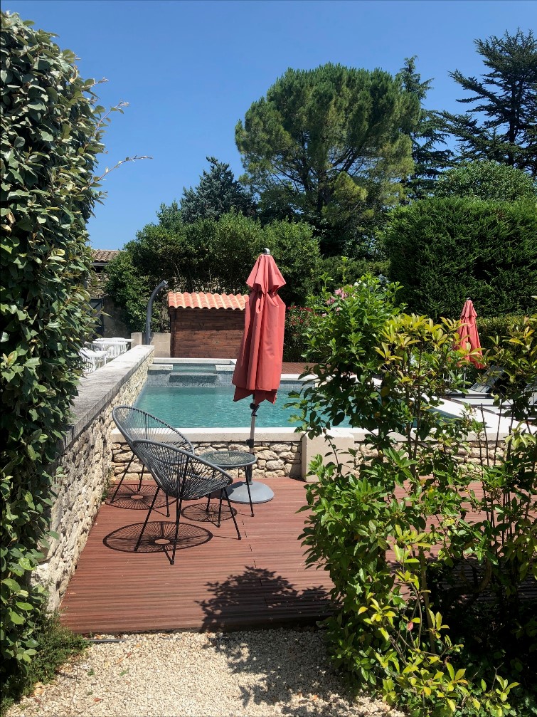 Visuel©Mildred Forman. La Belle Vie. Piscine arrière réservée aux clients hôtellerie.