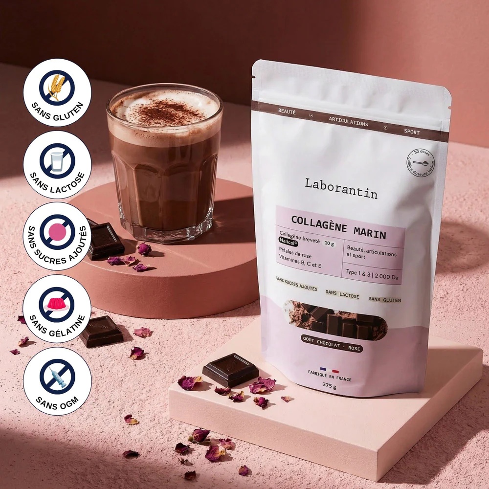 Visuel : ©Laborantin - Collagène marin Chocolat/Rose.