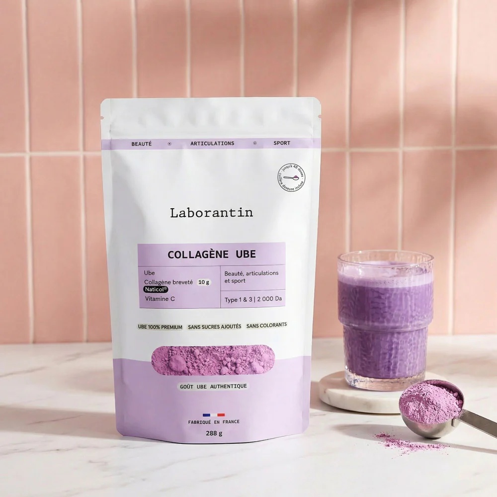 Ube est une recette de collagène à boire au goût naturellement doux, formulée avec de l’igname violette 100 % pur et de la vitamine C. Elle s’inscrit dans une approche plus globale en soutenant la beauté, le bien-être et le confort digestif.