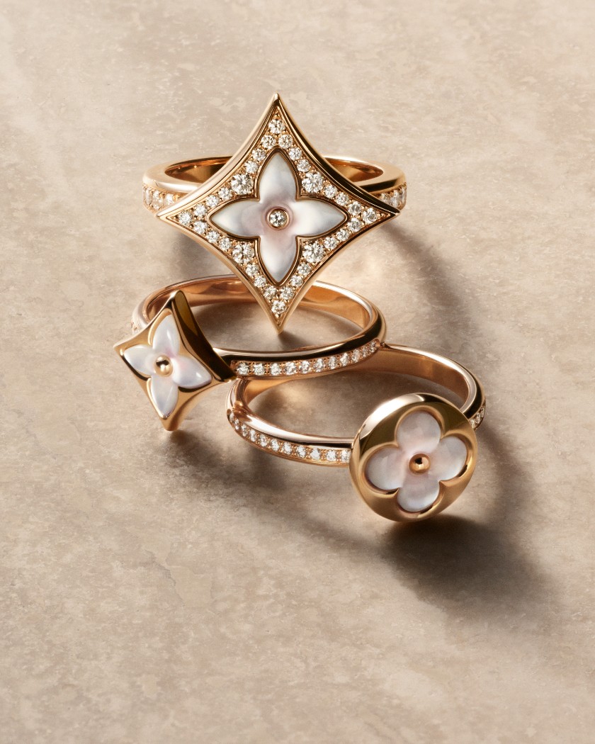 2 /Louis-Vuitton Collection Blossom, bagues en nacre et diamants ©Thomas Lagrange.