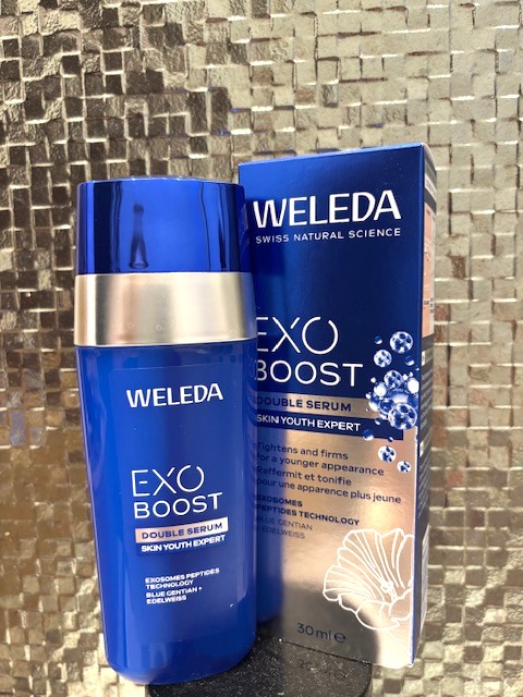 Fidèle à ses valeurs, Weleda a choisi pour mettre au point son nouveau sérum : « Double Sérum Exo Boost - Gentiane Bleue & Edelweiss », des exosomes végétaux, plus stables que les exosomes d’origine animale ou de synthèse. Grâce à son innovation Exosomes Peptides Technology issue de la centella asiatica, ces exosomes 100 % d’origine naturelle sont multipliés scientifiquement pour atteindre une concentration inédite.