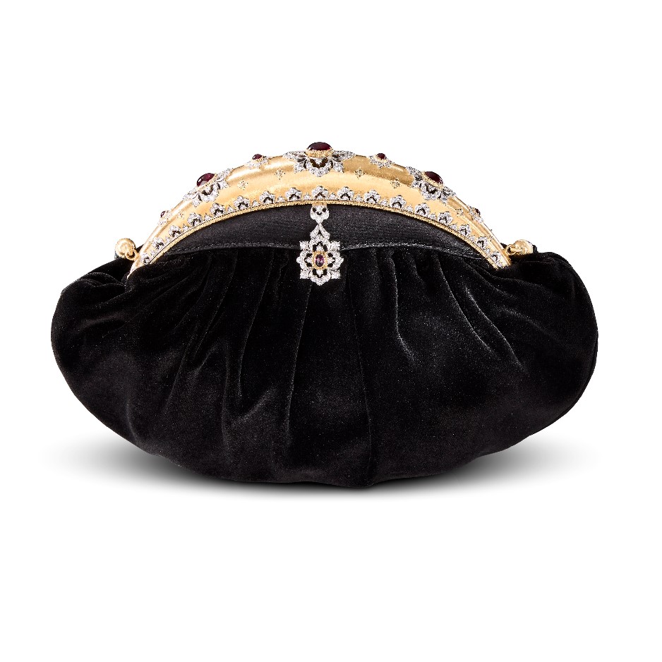 Entre 1920 et 1930, Mario Buccellati proposa ces pochettes de soirée, élégamment brodées et ornées d'or et de pierres précieuses à ses élégantes clientes. Elles connurent rapidement un succès phénoménal et devinrent un véritable accessoire de mode ; toutes les dames qui fréquentaient la Scala de Milan, située à côté de l'atelier d'orfèvrerie de Buccellati, en voulaient une pour se faire remarquer lors des représentations les plus prestigieuses. Mario utilisa du velours ultra-doux et de la soie orientale ; il s'appuya sur des couturières expertes et talentueuses et réussit à transformer un élément fonctionnel comme la fermeture d'un sac en un véritable bijou riche en ornements et en créativité.