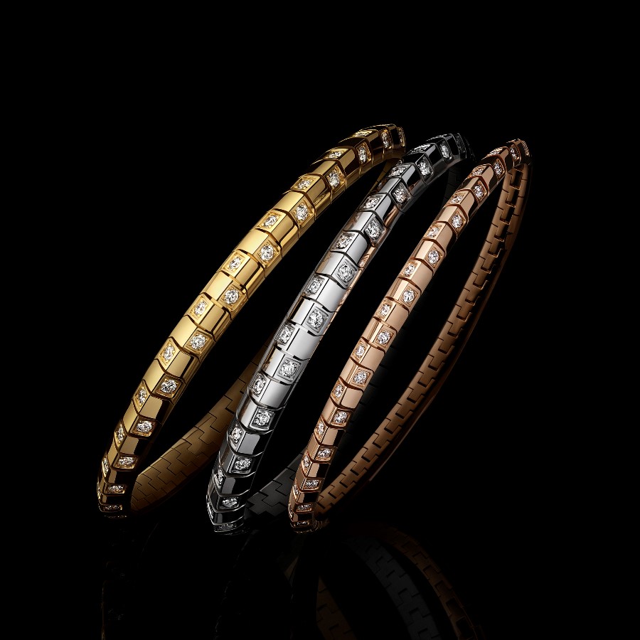 Les maillons de chaque pièce ont ainsi été assemblés un à un et séparés d’un interstice, pour une exceptionnelle fluidité de mouvement. Chaque modèle est, par ailleurs, doté d’un fermoir invisible relevant d’une véritable prouesse technique.
